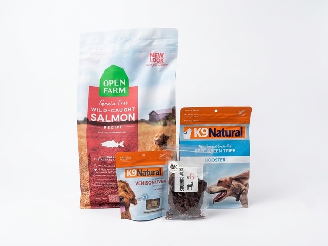 お待たせいたしました! 大型犬用のフードセットの登場です◎ プリスティーン(天然)なドッグフード「OPEN FARM」を使用したフードセットをご紹介いたします。 毎日の食事は、大切な愛犬の健康を保つために欠かせません。 このセットには最低限の栄養バランスが整ったドッグフードが含まれています。 毎日の食事計画も簡単に立てられます。 天然のサーモンが原料のドッグフードと、フードの消化をたすけるグリーントライプ、タンパク質を補うベニソンレバー(肝臓)や野生鹿のラング(肺)で、愛犬の健康的な体作りをサポートします。 レバーは不足しがちなタウリンや、鉄分や亜鉛の補給にもなります。 サーモンは皮膚や被毛の健康に役立ちます。 ご用意した商品は全てトレーサビリティがはっきりしている安心安全な食べ物です。 きっと今までのフードとの違いを感じていただけると信じています。 大切な家族である愛犬の健康を守るのは飼い主さまです。 ぜひ一度お試しください。 ◾️セット内容 OPEN FARM サーモン(ベースフード) 4.98kg k9ナチュラル ラムグリーントライプ(補助食) 200g K9ナチュラル ベニソンレバー(補助食) 50g 野生鹿ラングジャーキー(補助食) 30g ◾️与え方 OPEN FARM(サーモン):給与量は裏面記載を参考にしてください k9ナチュラル ラムグリーントライプ:体重1kgに対して1cmくらいを目安に毎食与えてください K9ナチュラル ベニソンレバー:毎食少量トッピングとして与えてください 野生鹿ラングジャーキー:毎食少量トッピングとして与えてください 【どのくらいでなくなる?】 ◎15kgのコの場合 約27日 ◎20kgのコの場合 約20日 ◎25kgのコの場合 約16日 ◎30kgのコの場合 約14日 ※パピーの場合は既定の給与量より多く与えてください ※「成犬用」としてご用意していますが、パピーやシニアの子にも与えていただけます。 「パピー&老犬用」との違いは、セットのグリーントライプの種類の違いになります。 【グリーントライプの「ラム」と「ビーフ」の違い】 「お腹の健康」へのアプローチには、大きな違いはありませんが、それぞれのお肉の特長が反映されています。 ラム・グリーントライプは低脂肪・低コレステロール。香りが強く、嗜好性が高いので、食べムラのあるコや体重管理をしたいコなどにお勧めです。 ビーフ・グリーントライプは、消化がやさしく、抗炎症や、目や脳の健康に必要とされているオメガ3脂肪酸が豊富に含まれているので、パピーやシニア、内臓をいたわりたいコなどに、よりお勧めです。 ◾️原産国 OPEN FARM カナダ k9ナチュラル グリーントライプ ニュージーランド k9ナチュラル ベニソンレバー ニュージーランド 野生鹿ラングジャーキー 日本