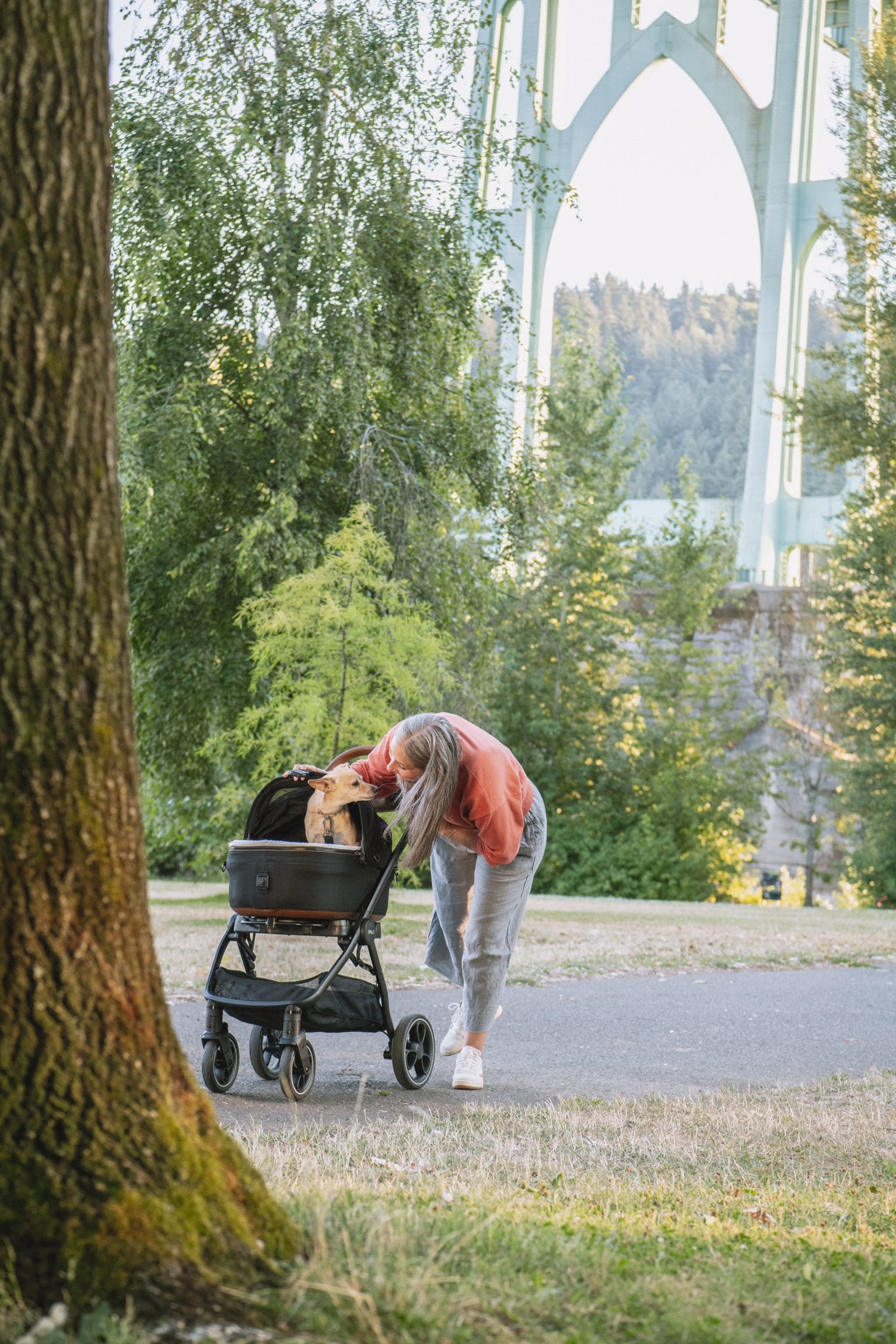 車を降りたら、プレミアム カートRoscoeのフレームに素早く装着できます。これにより、ペットの冒険を次のレベルに導きます。