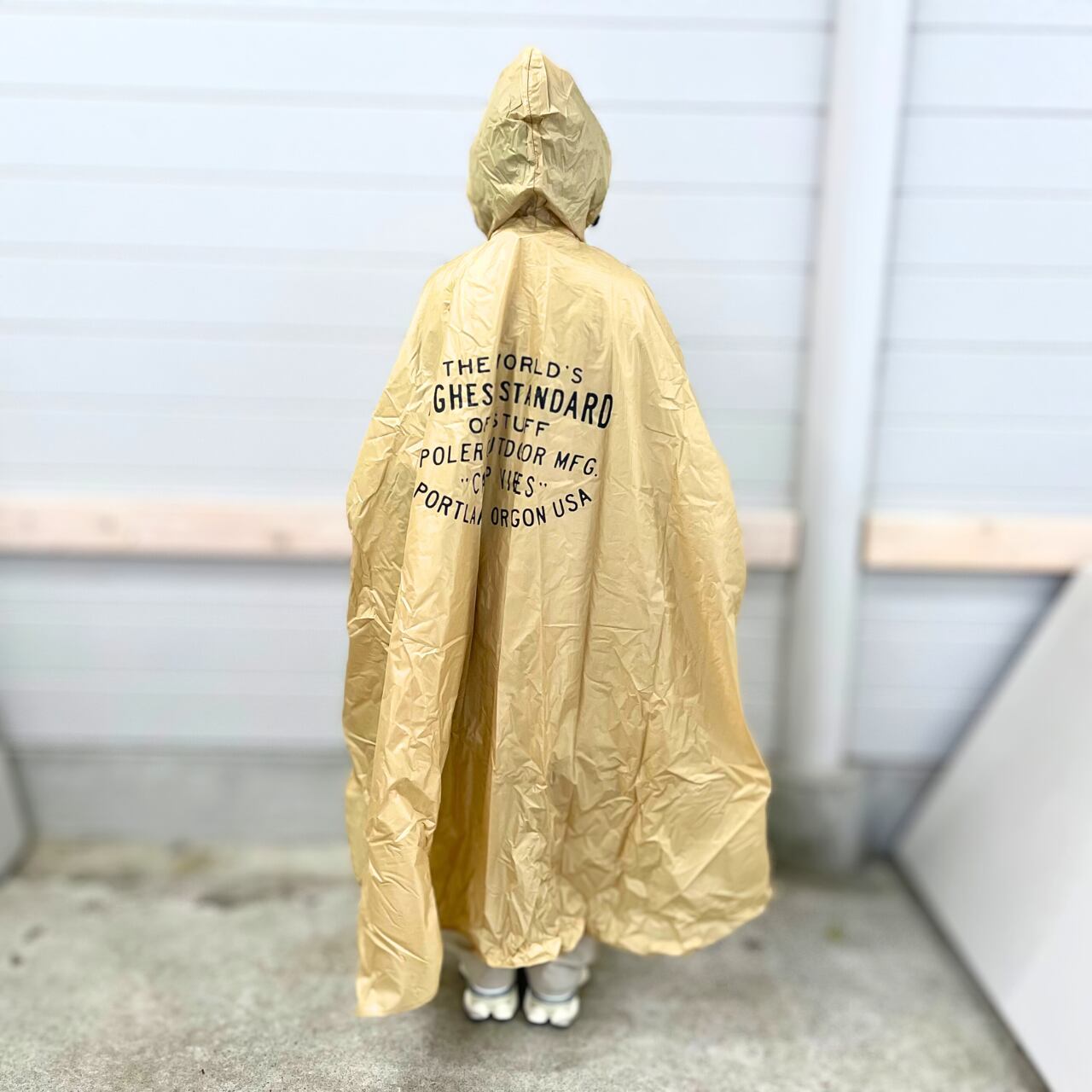雨の日のお散歩に活躍するフード付きレインポンチョ