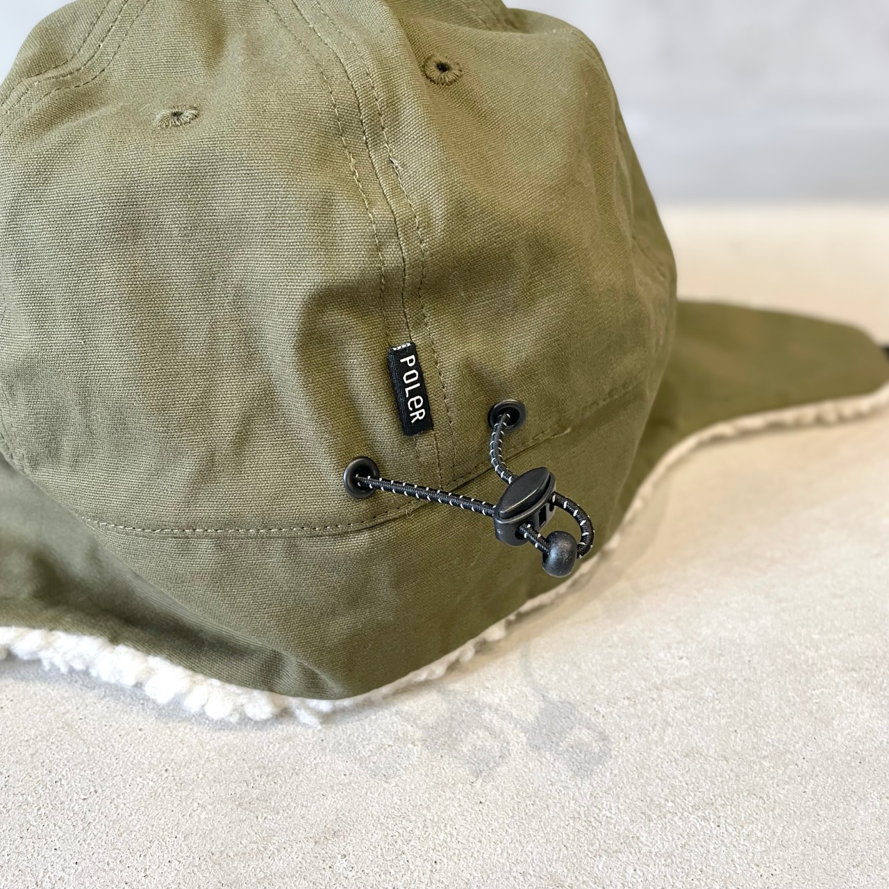 コットンボディなので、スノーアクティビティなどには向きませんが、素朴な雰囲気でスタイリングのアクセントに◎