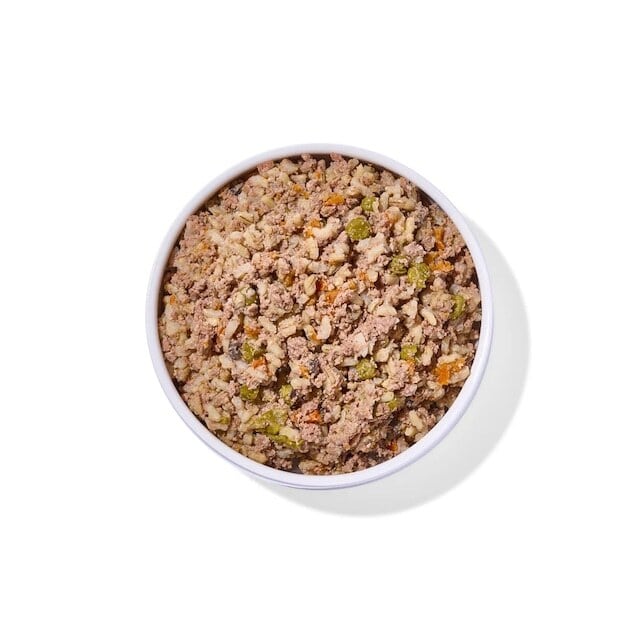子羊(肉・心臓)、玄米、ニンジン、エンドウ豆、マッシュルーム、卵、雑穀粉、卵殻粉、海塩、植物油、水
