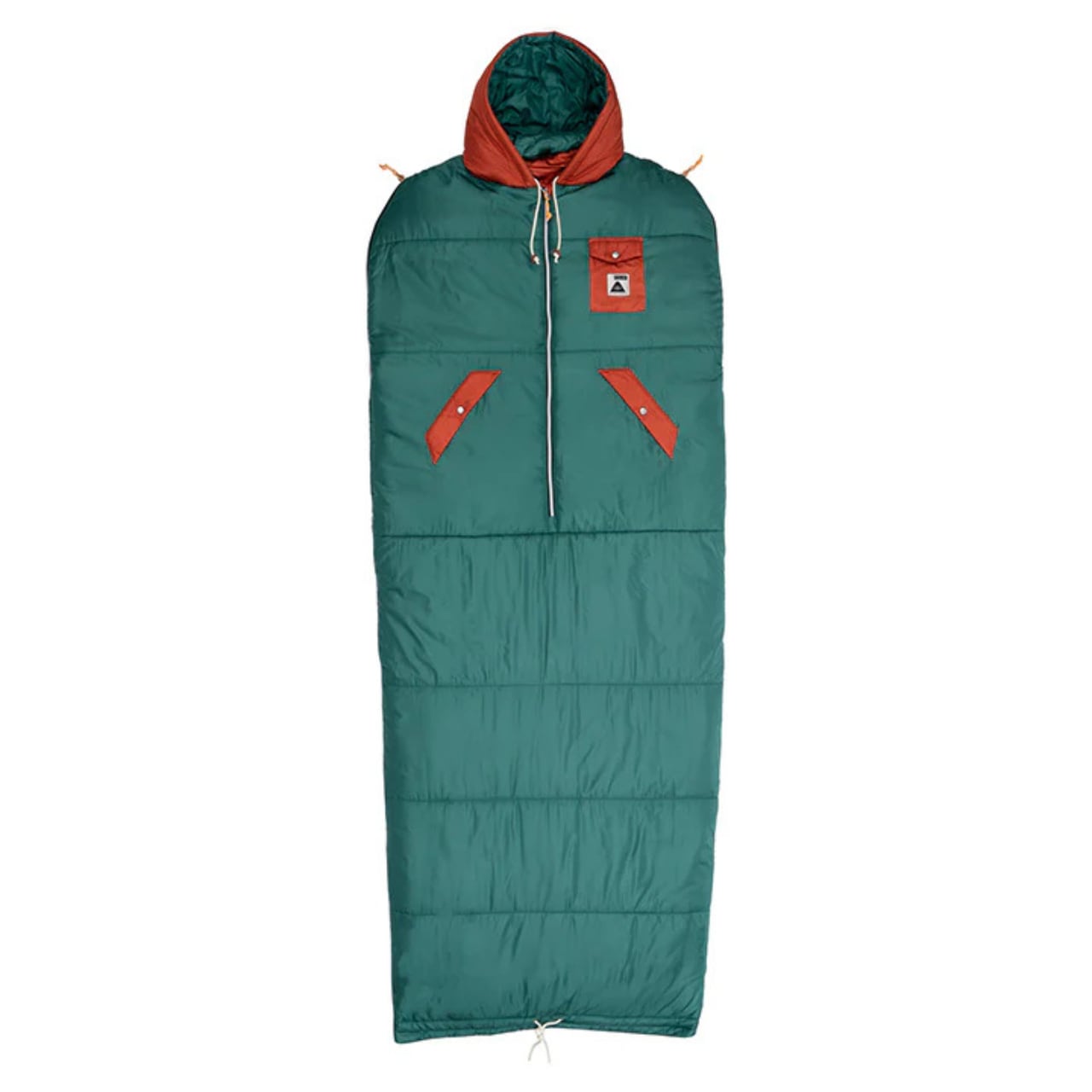 ファスナーや裾の部分を開放すると寝袋を着たまま、ぬくぬくした状態でフィールドを散策することも可能。