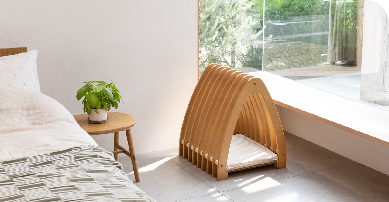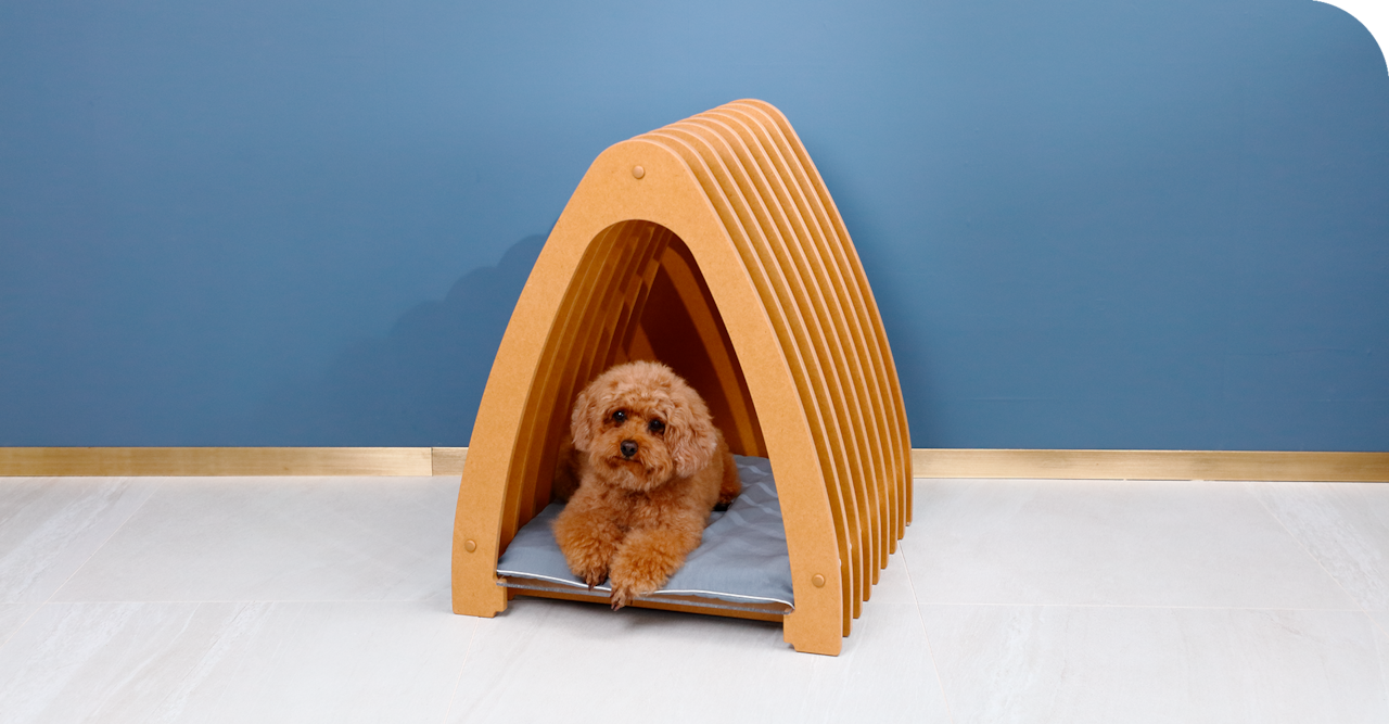 アルファベットの「A」をモチーフに造形的でスッキリとしたデザインのドッグハウスです。