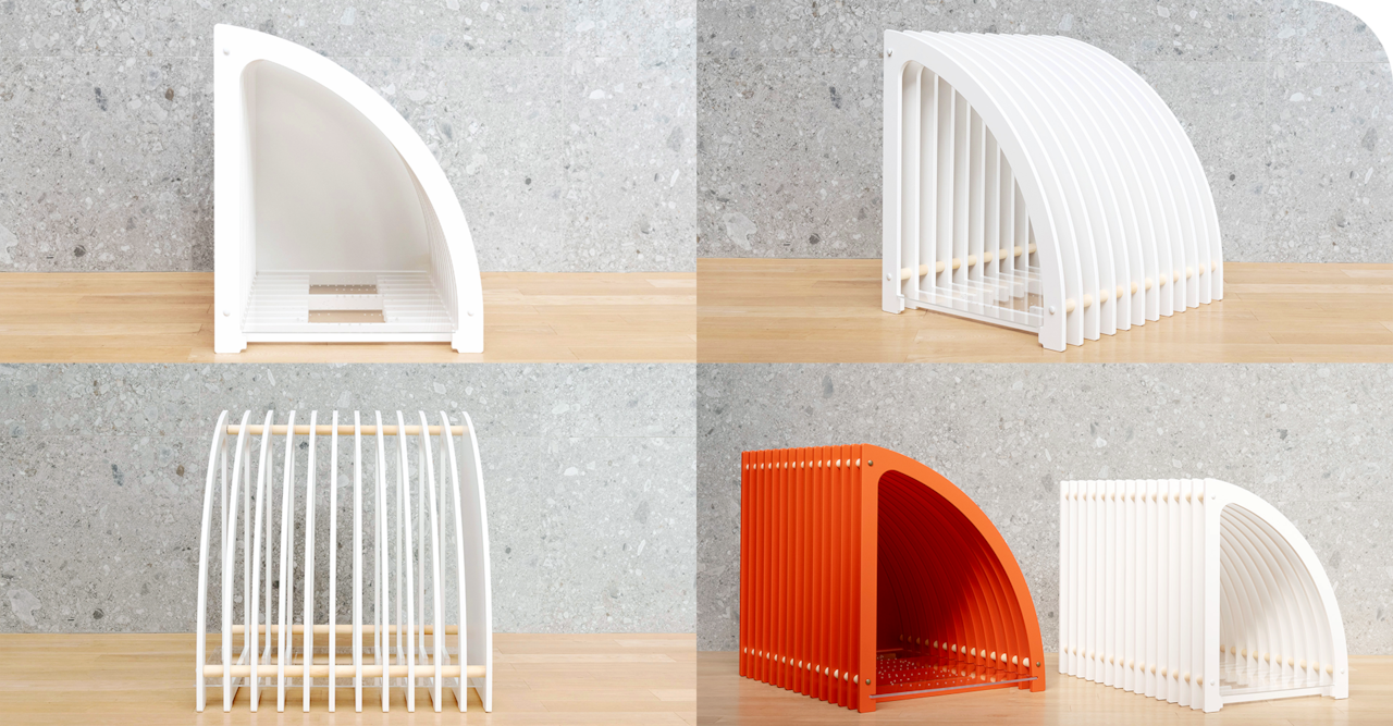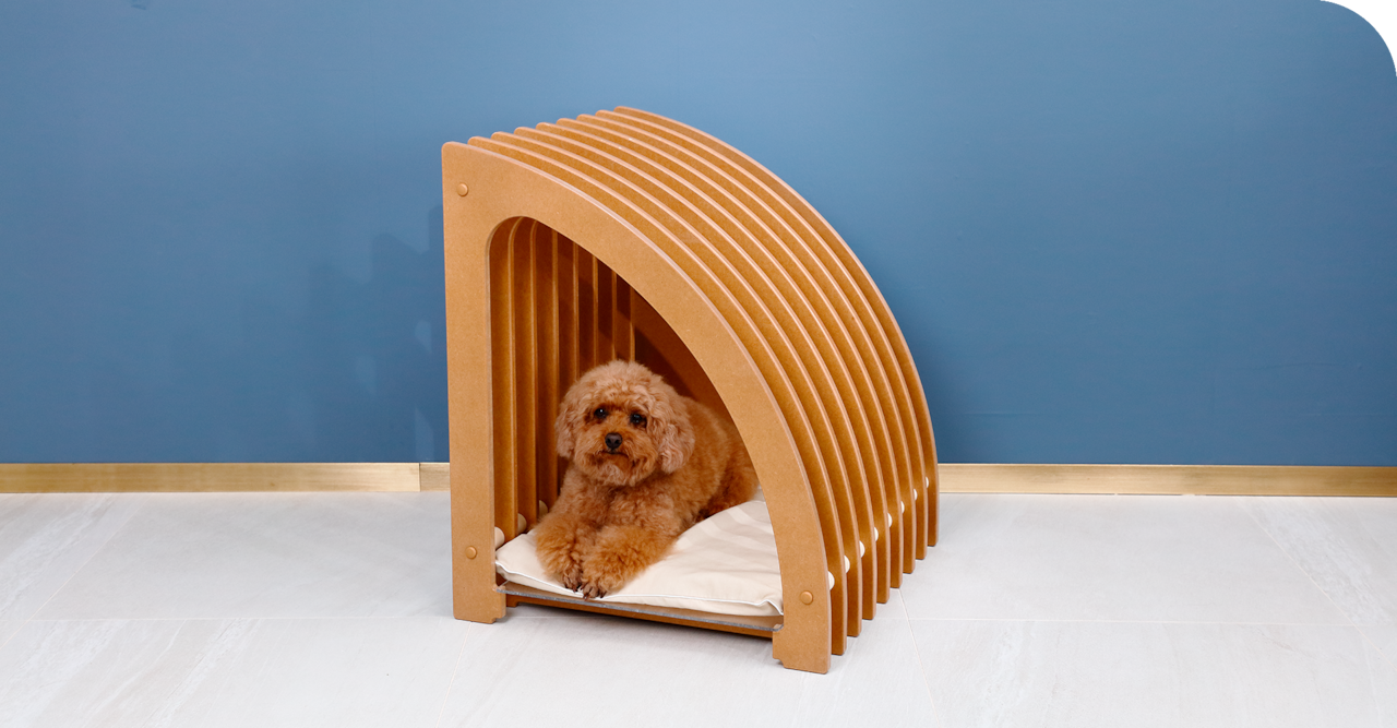 アルファベットの「D」をモチーフにデザインをしたドッグハウスです。