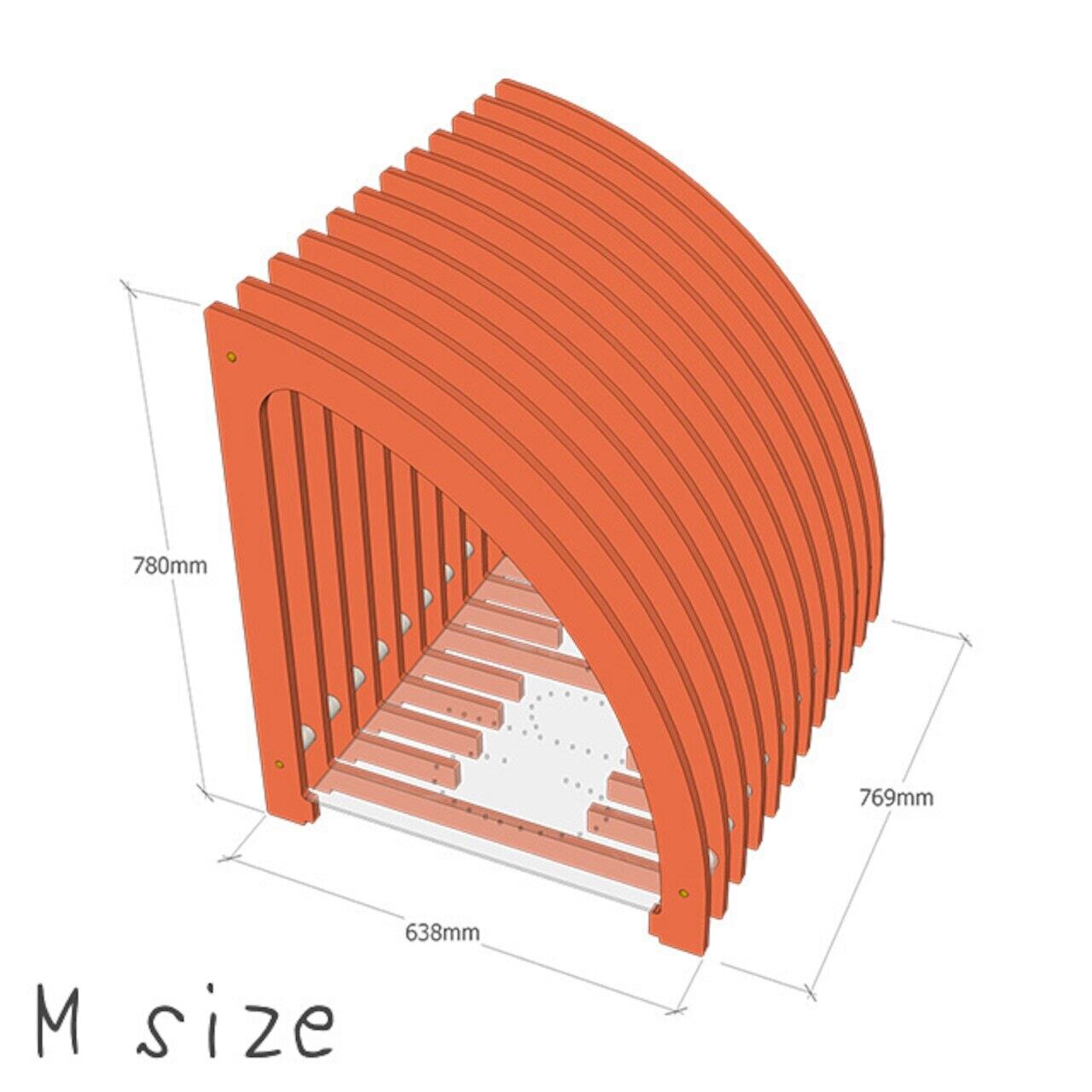 アルファベットの「D」をモチーフにデザインをしたドッグハウスです。