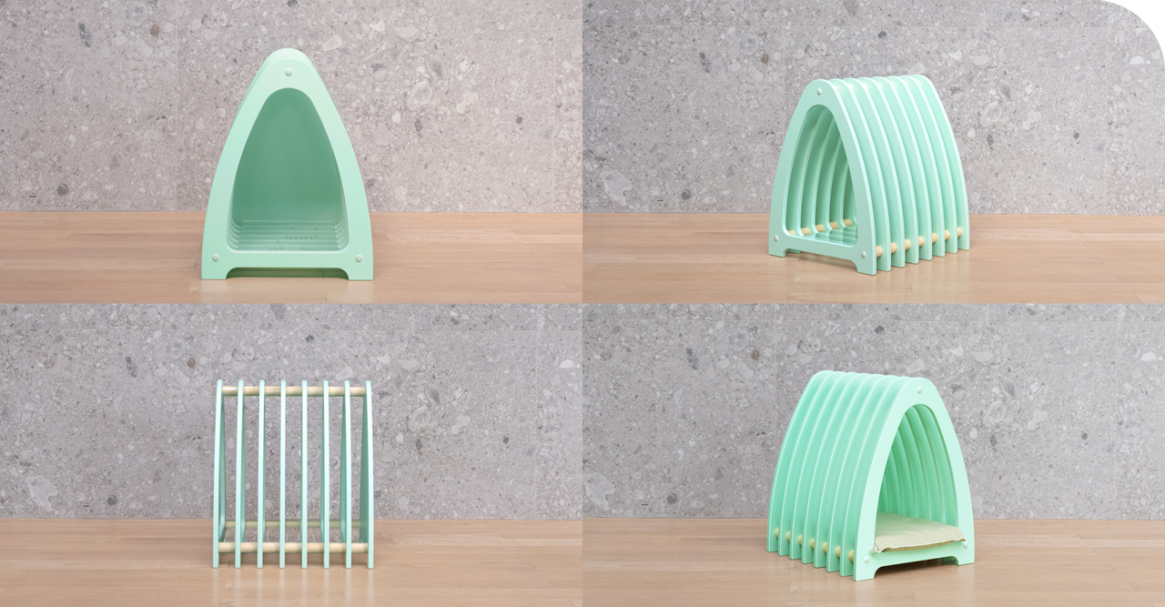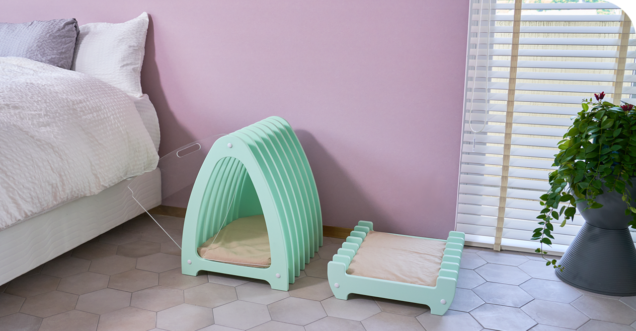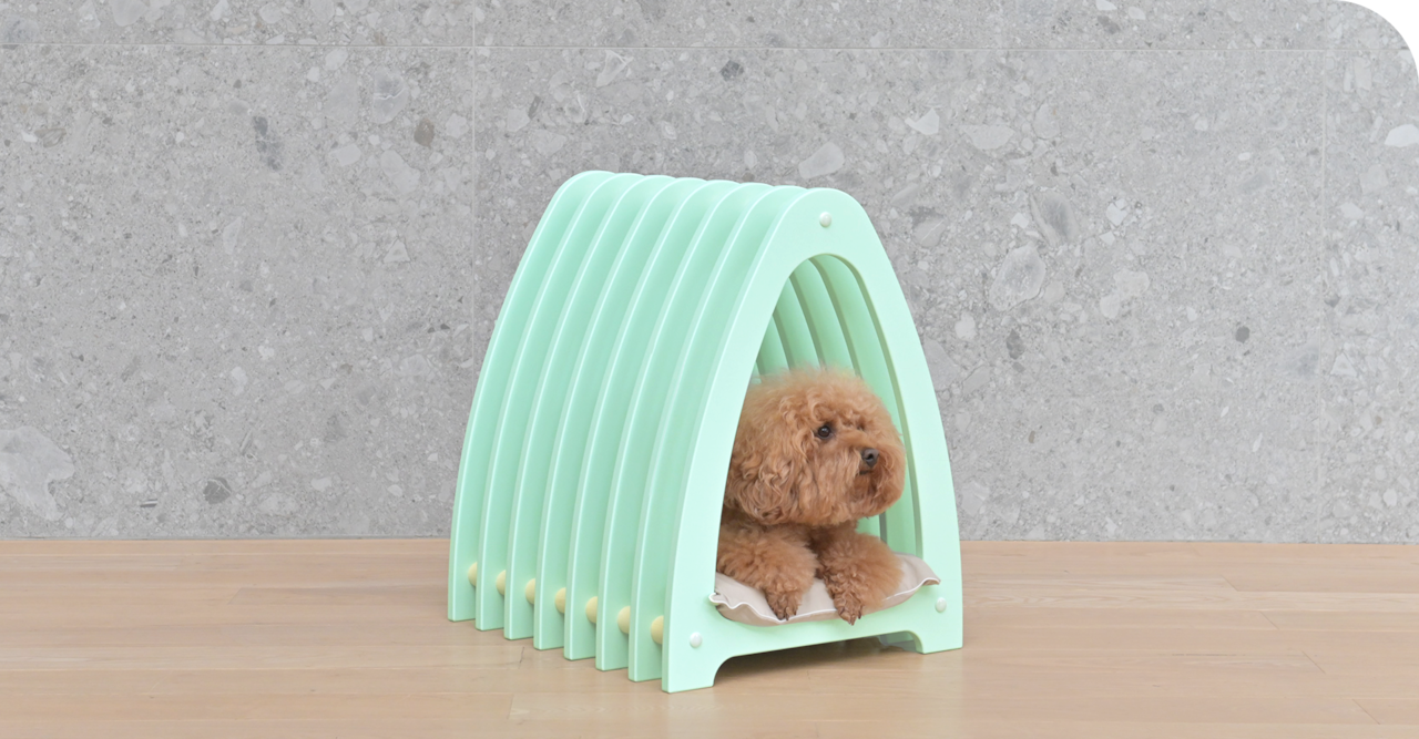 ドッグハウスは組立て式なので、使用しない時は分解して収納可能です。