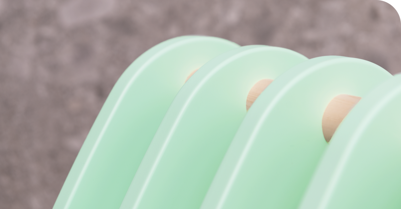 アルファベットの「A」をモチーフに丸みを持たせたやわらかな印象のデザイン。