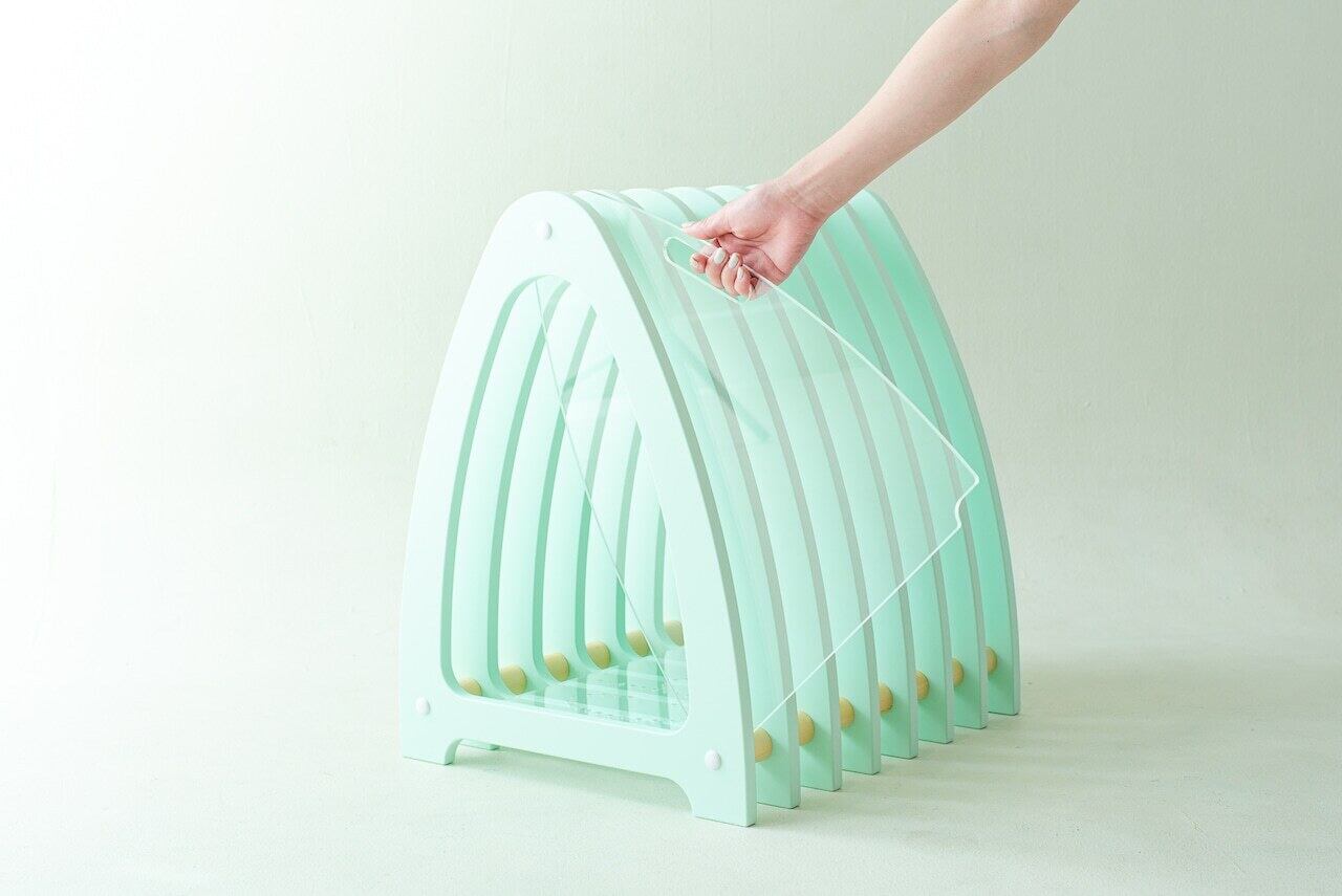 ドッグハウス用の扉は、アクリル板を採用し、シンプルなデザインで機能的です。