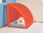 ドッグハウス用の扉は、アクリル板を採用し、シンプルなデザインで機能的です。